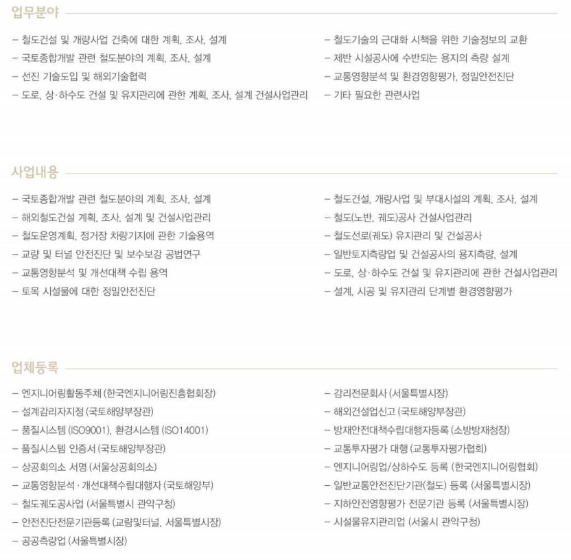 (주)케이알티씨는 1965년 철도전문 엔지니어링회사로 설립되어 우리나라 철도 기술발전을 주도하면서 최고의 기술력과 품질의 가치창조를 위하여 지속적으로 노력하여 왔습니다. 또한, 해외 선진 철도기술의 도입과 기술특허 및 신기술 개발로 고속철도, 도시철도, 자기부상철도, 해외철도 건설감리 분야에서 우리나라 철도 건설 기술발전에 선도적 역할을 하였습니다.