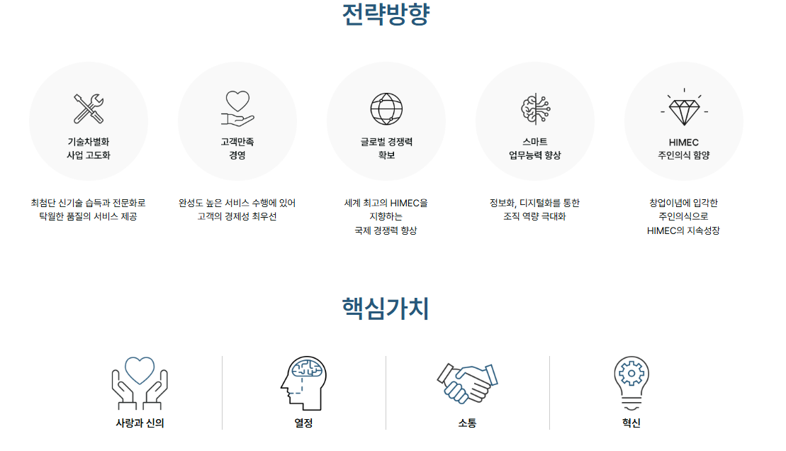 대한민국 건축설비 토탈 엔지니어링 No.1 하이멕은 1966년 창립하여, 사업영역을 확장해 왔습니다. 기업 모태인 '한일기술연구소'의 사명에서 나타나듯 하이멕은기술 개발과 인재 양성을 위해 연구개발에 꾸준히 노력해왔으며 대한민국 기계설비 업계의 동반성장을 위하여 노하우와 기술을 공유하고 전파하는데 힘쓰고 있습니다.